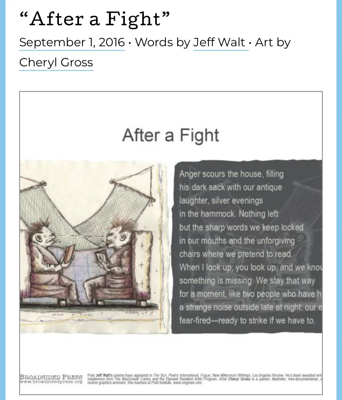 J E F F collaborates with Broadsided Press & visual artist Cheryl Gross.